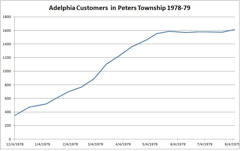 By the end of the month, Adelphia is up to 885 customers in Peters Township