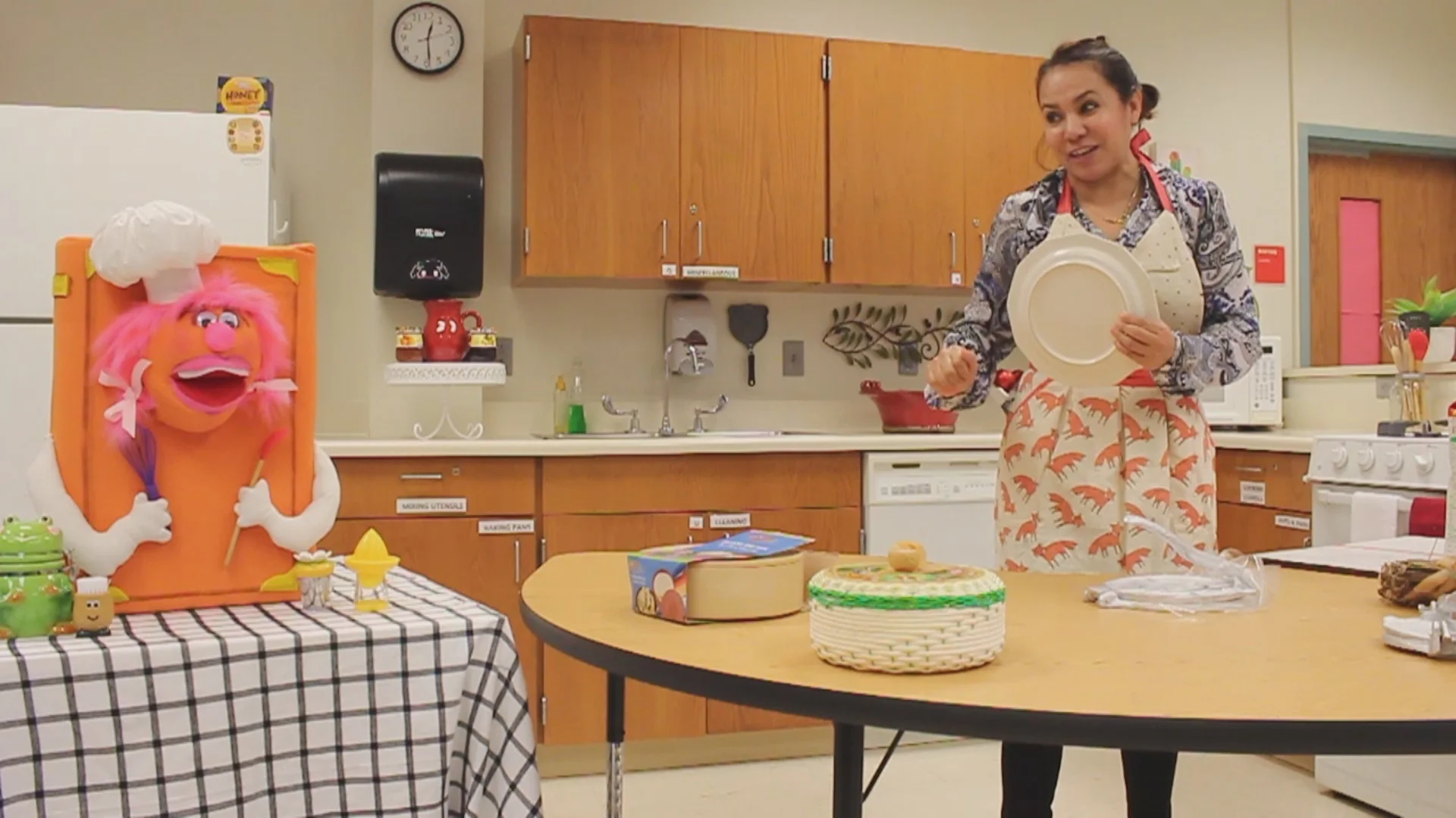 PTHS World Language Teacher Mrs. Dulce Miller demonstrates step-by-step authentic Mexican cooking recipes with the help of a puppet named Book.